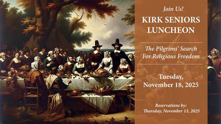 Kirk Seniors LuncheonNovember 18, 2025 11:30amRoom: St. Andrew's RoomCost: $20.00Website: http://www.kirkinthehills.org Online Form - Kirk Seniors Luncheon Powered by FormstackRegisterAdd to Calendar