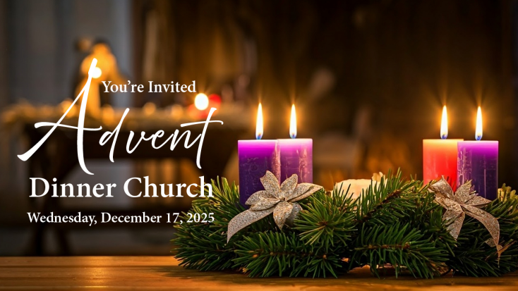 Advent Dinner church will be on Wednesday, December 17 beginning at 5:30pm in the St. Andrews room. Please plan on wearing your favorite Christmas sweater and come prepared to listen to a message by Pastor Edwin, and to sing Christmas carols led by Merideth Estevez and accompanied by pianist Philip Kelly. Please RSVP and a suggested donation of $10 is appreciated.
