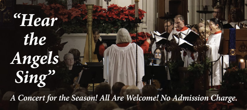“Hear the Angels Sing,” a program featuring carols and choral music of Advent and the Christmas Season with music by Matthew Owens, Patrick Hadley, C.V. Stanford, Philip Stopford, James Biery, and familiar congregational carols accompanied by strings, oboes, harp and organ, conducted by Marilyn Biery.
