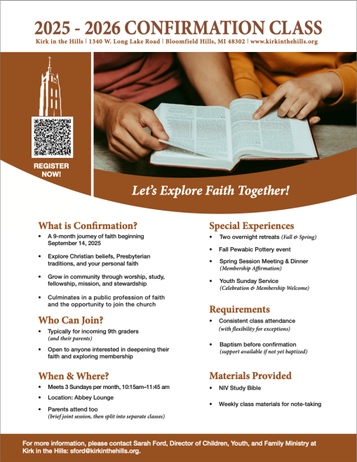 To join the Fall 2025-2026 Confirmation Class, please click here.